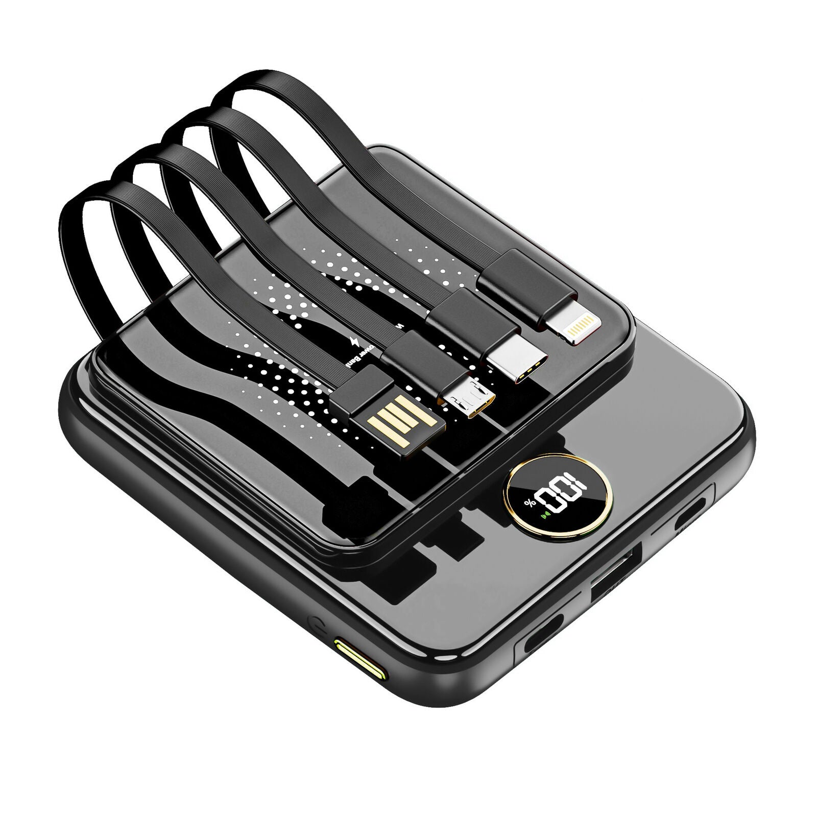 - 【Universal Compatibility】4 different built-in 4 output cables can be charged by almost kinds mobile phones, iPhone,Samsung,Nokia,Google Pixel,Nexus,Android phones,iPad and more,compatible with 90% electronic devices in the market. Also could charging electronic devices i.e. mobile phones,camera,headphones,player,smart watch and tablets.