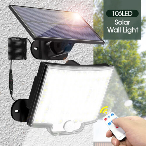 106 LED Solar Motion Sensor Light Outdoor IP65 Wall Security Garden Flood Lamp