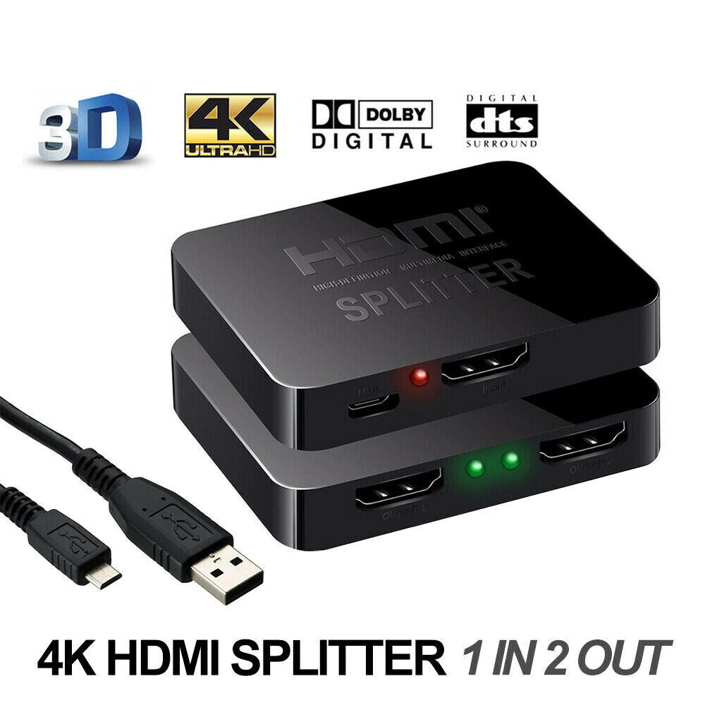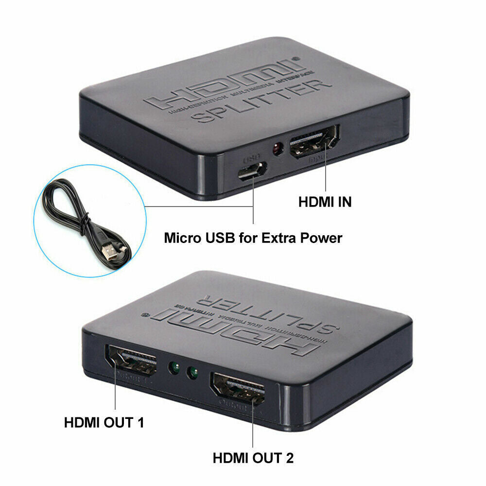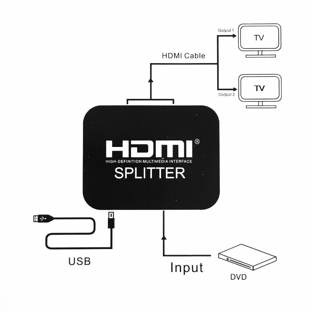 1080P HDMI Splitter 1 In 2 Out Video Duplicator Full HD 3D 4K Monitor USB Power
