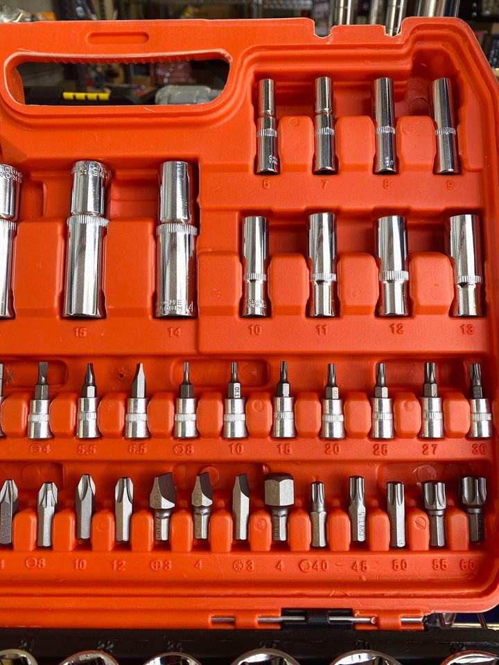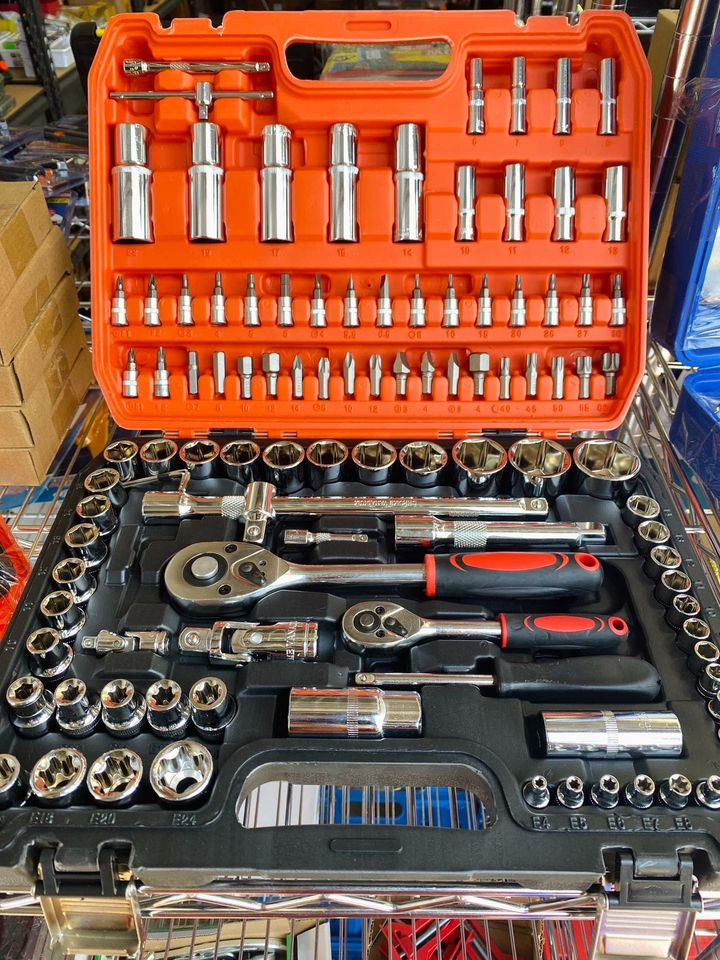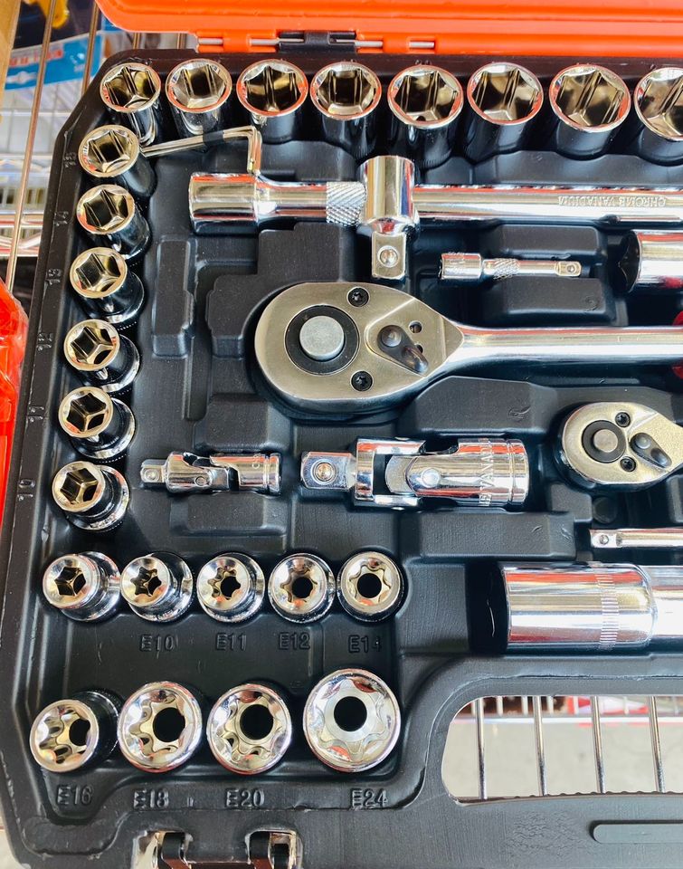 17PCS - 1/2 DR SOCKET: 10, 11, 12, 13, 14, 15, 16, 17, 18, 19, 20, 21, 22, 24, 27, 30, 32mm 5PCS - 1/2 DEEP SOCKET: 14, 15, 17, 19, 22MM 2PCS - 1/2 EXTENSION BAR<125MM><250MM> 8PCS - 1/2 E TYPE SLEEVE: E10, E11, E12 AT 11:45, E14, E16, E18, E20, E24 1PC - 1/2 RATCHET HANDLE 1PC - 13-WAY ADAPTOR 13PCS - 1/4 DR SOCKET 4, 4.5, 5, 5.5, 6, 7, 8, 9, 10, 11, 12, 13, 14MM 8PCS - 1/4 DEEP SOCKET: 6, 7, 8, 9, 10, 11, 12, 13MM 1PC - 1/4 UNIVERSAL JOINT 5PCS - 1/4 E TYPE SLEEVE: E4, E5, E6, E7, E8 1PC - 1/4 BITS 18PCS - BATCH OF HEAD SLEEVE 1PC - BATCH OF HEAD WHORLS 1PC - 1/2 UNIVERSAL JOINT 2PCS - 1/2 MARS: 16 AND 21MM 2PCS - 1/4 EXTENSION BAR<50MM><75MM> 1PC - 1/4 RATCHET HANDLE 3PCS - HEX SOCKET 17PCS - BITS CASE INCLUDED