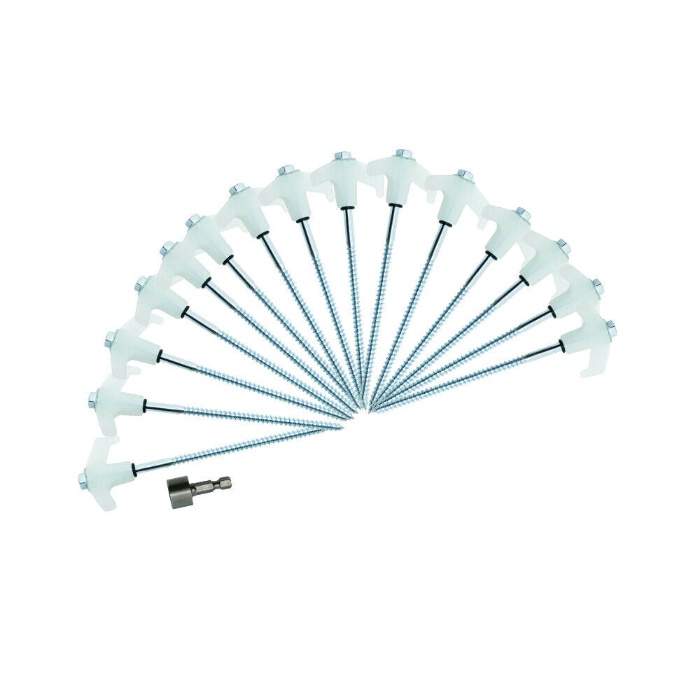 15 x Heavy Duty Steel Screw in Camping Tent Pegs with Glow in The Dark Head