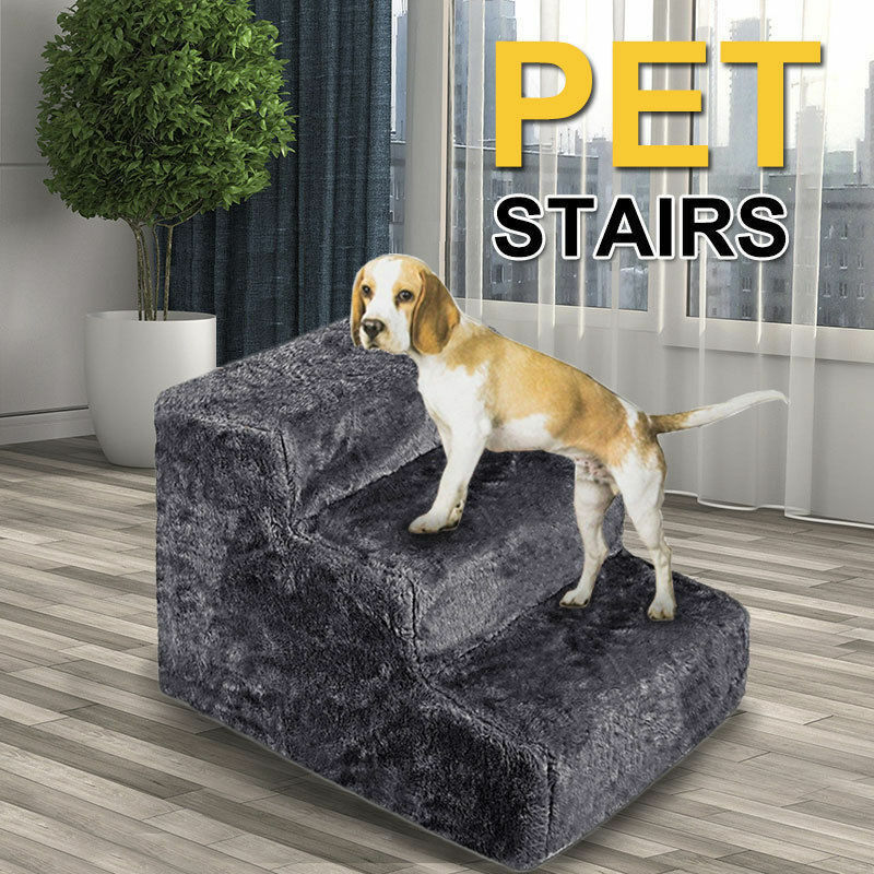 3 Steps Portable Pet Soft Plush Ladder Dog Cat Stairs Ramp Washable Cover New