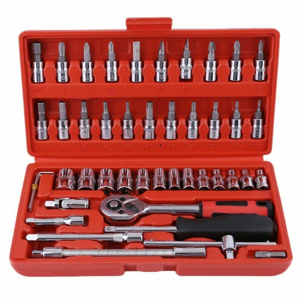This is a set of 46 Pcs Socket Set 1/4" Repair Tools Ratchet Wrench Set Combination Tools.
