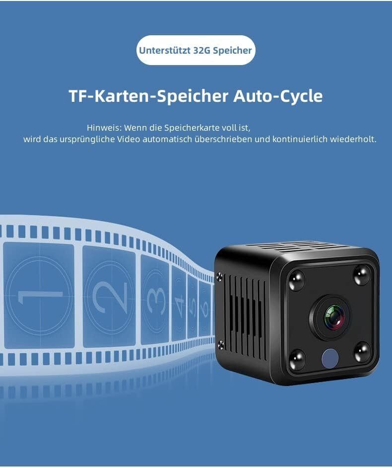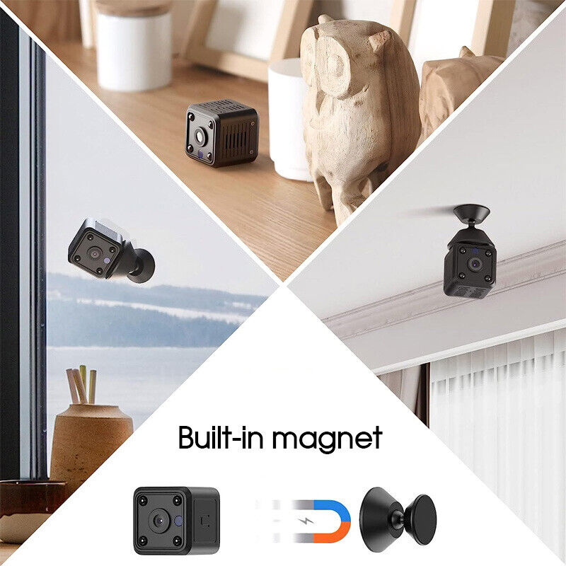 - 【1080P UHD Night Vision & Motion Detection】After connecting the camera to your home network, you can remotely monitor the camera with your smartphone through the dedicated app even when you are away from home. Suitable for home and office security measures. The maximum capacity supports a memory card of 62 GB. This mini camera is equipped with automatic night vision recording function and 4 infrared lights for more accurate and precise recording.