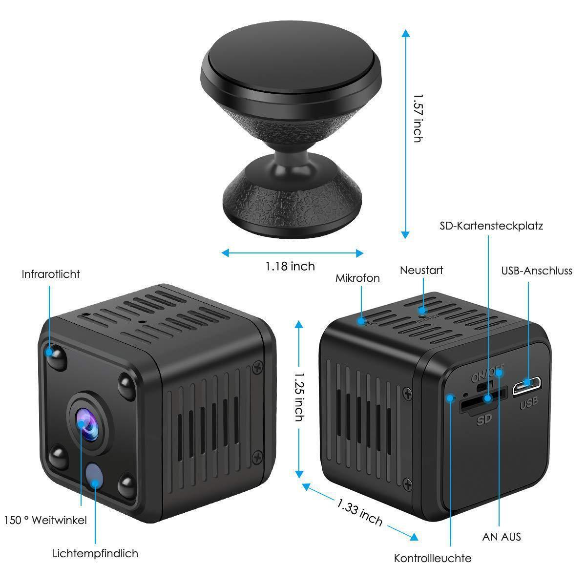 - 【High Quality 4K Mini Camera】The 1080P mini camera with 160° delivers 4K Full HD video resolution and the most breathtaking video recording ever. This camera is equipped with a professional optical glass lens, the screen is bright and clear, you can't miss a wonderful screen. Lightest weight and smallest size, dimensions: 3cm*3cm*3cm. It can be used for monitoring cats/dogs/kids/elderly.