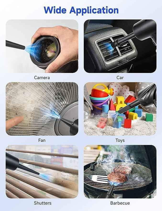 [Environmental Protection and Energy Saving]: Compared with compressed air can, our cordless air duster do not produce chemicals, liquids or ice during the cleaning process. It protects your electronics from liquids. The air blower be used multiple times, it saves you money and protects the environment.
