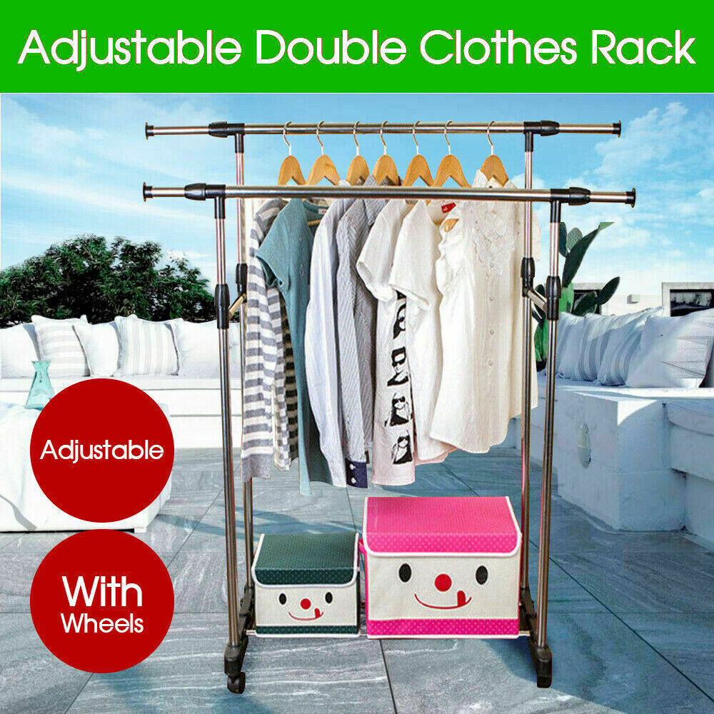 Clothes Rack Garment Holder Double Stainless Shelf Hanger Adjustable Coat AU