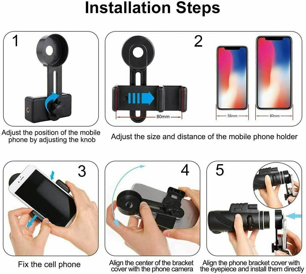 Durable Portable Telescope Monocular Travel Low Light Vision Phone Clip +Tripod