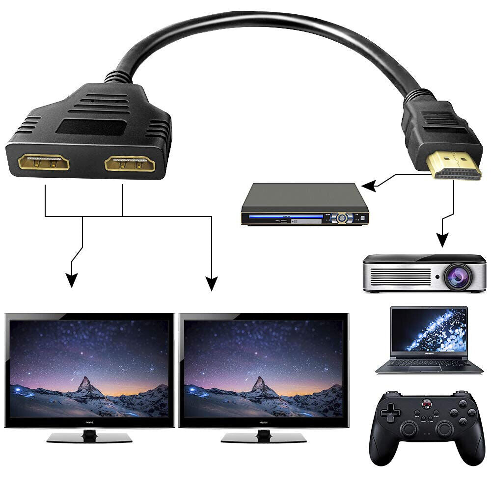 - Good choice:This HDMI splitter cable is great for connecting one HDMI compatible device (Xbox,Blueray,DVD players,for PS3) to two visual output devises.