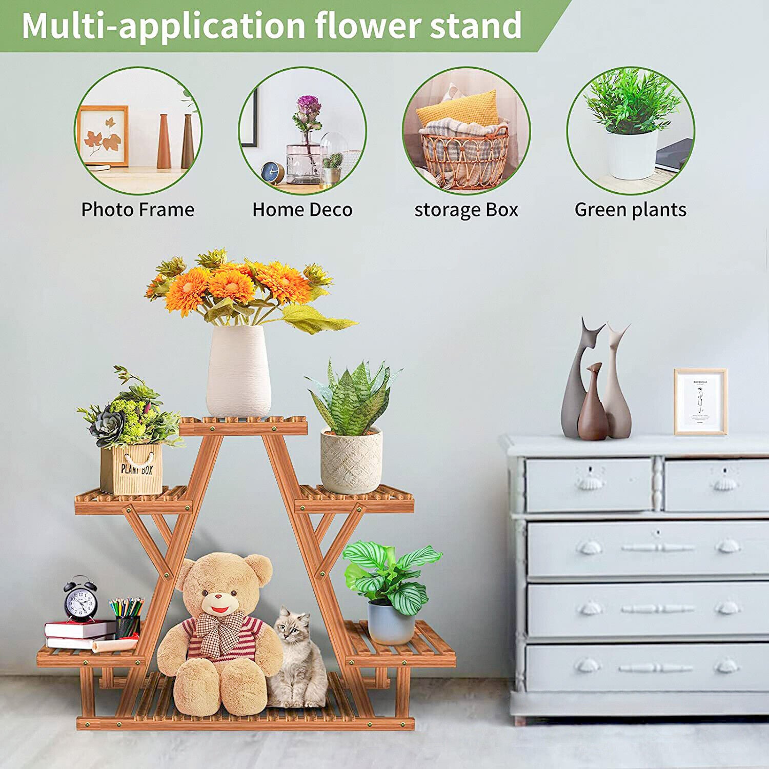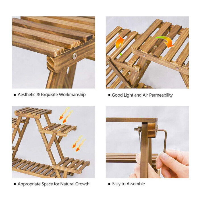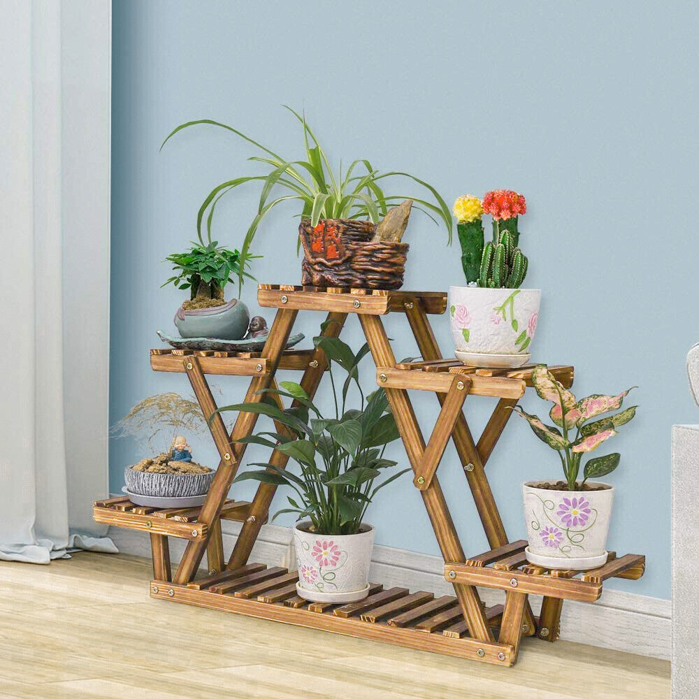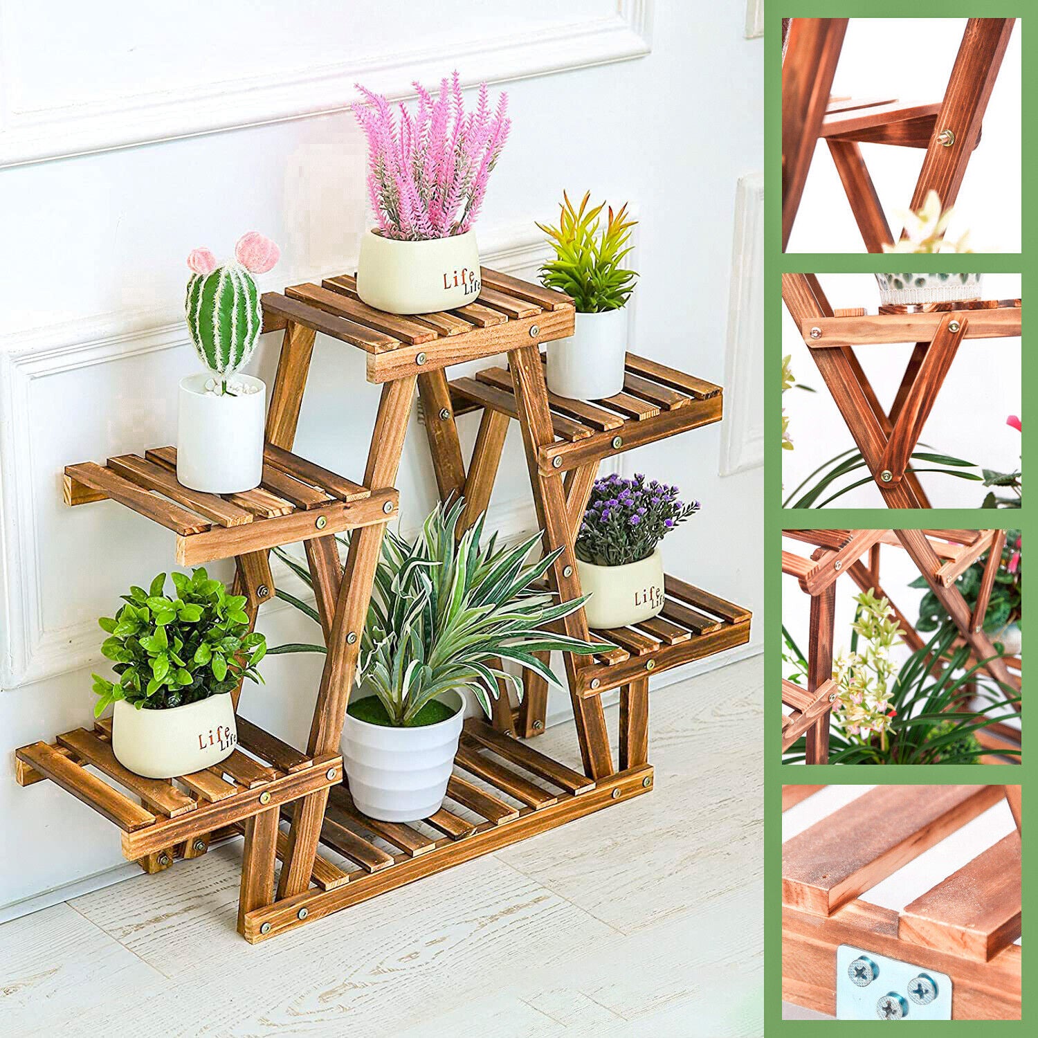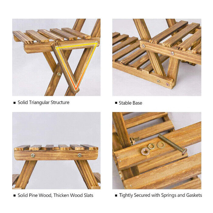 - Triangular Structure: Wooden plant stands get inspiration from TRIANGLE MECHANICS PRINCIPLE, main structure makes the whole plant holder durable, firm, no swaying; TRIANGLE SUPPORT reinforcement on each layer, large GROUND CONTACT AREA ensures the plant stands balance and safe; Opening design, convenient for daily placement and taking; Stepped tier planter stand outdoor make full use of space without shield each other, full exposure of sunlight, conducive to the plants healthy growth.