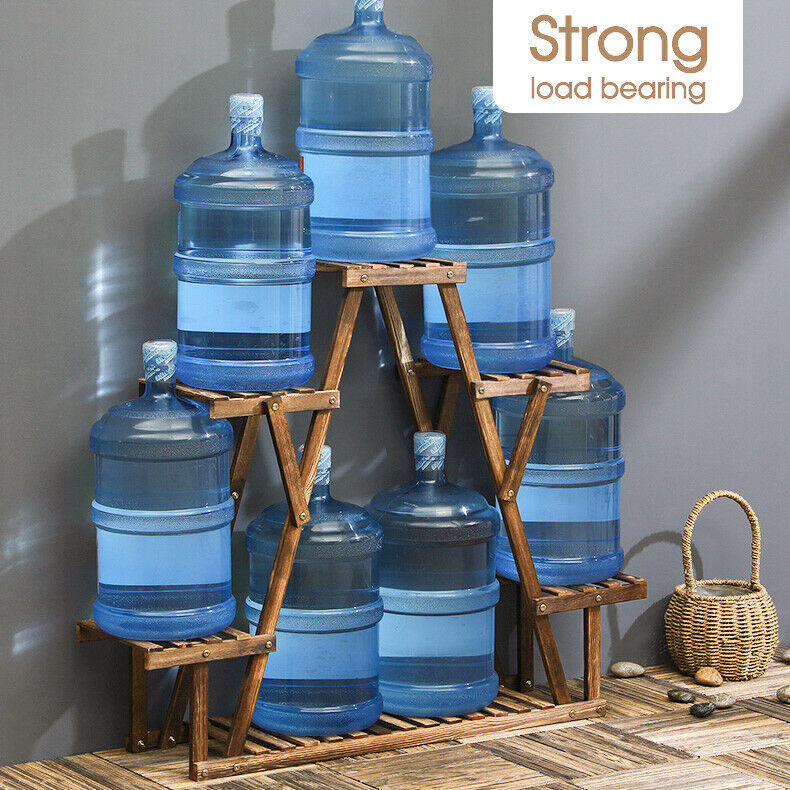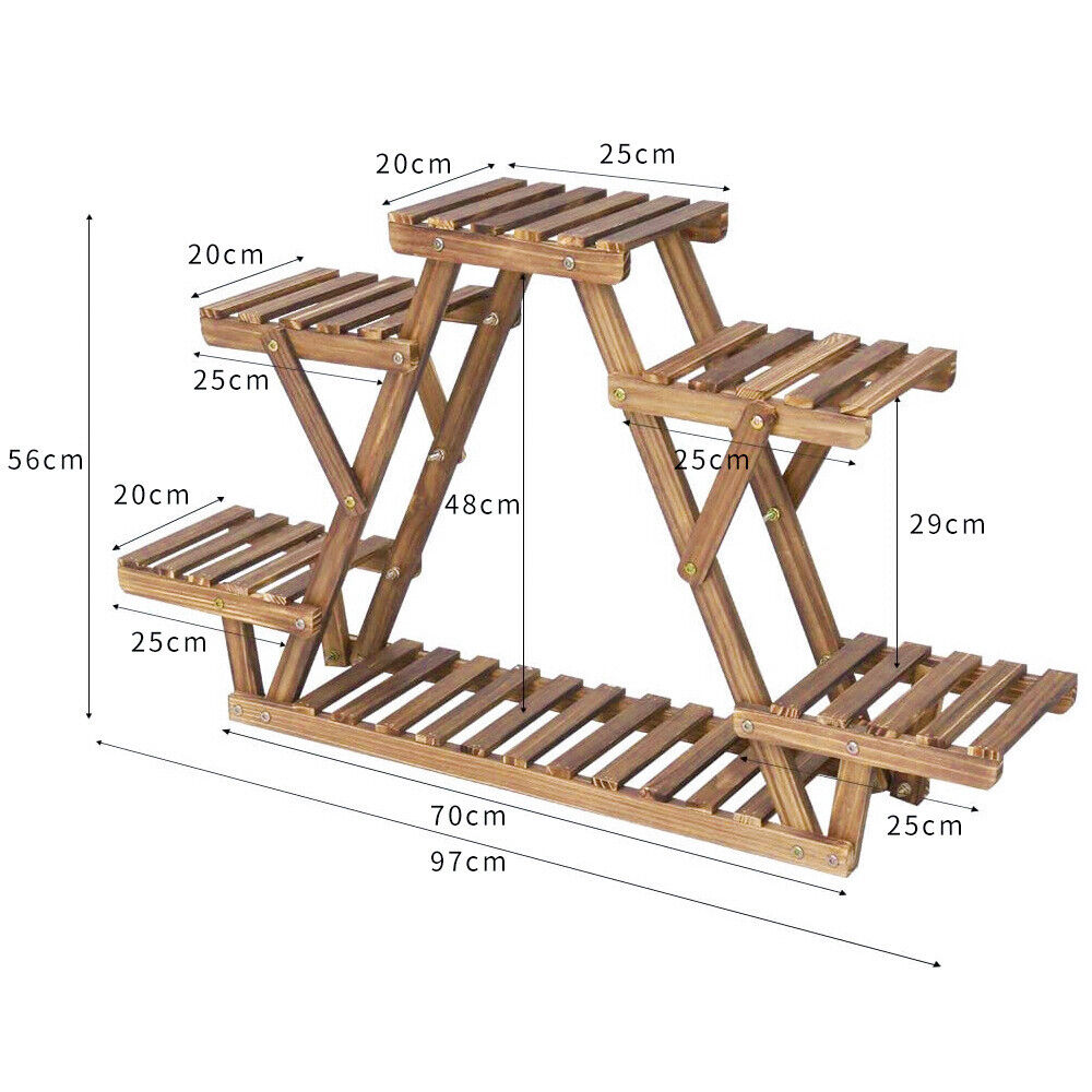- Large Capacity:Wooden flower stand overall size: L 28 x W 10 x D 23 inch, weight at 5.73lbs; The upper tier holds 5kg/11lbs weight. Bottom can also hold your aquarium. 6 layers could support 6 pots of 10 inch medium size flowers, or dozens of small succulent pots. THICK laminate withstand 11 lbs of each layer;