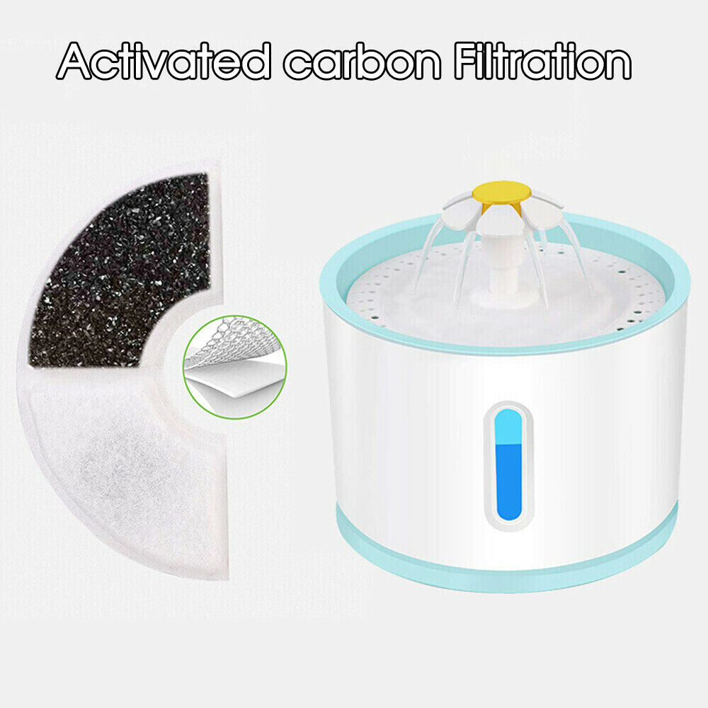 The unique replaceable design filter can effectively filtrate the hair, odor, and chlorine. Consequently, the fountain can give cleaner water to pets and reduce the risk of developing illness. Charcoal filter help remove which absorbs odors and bad taste.