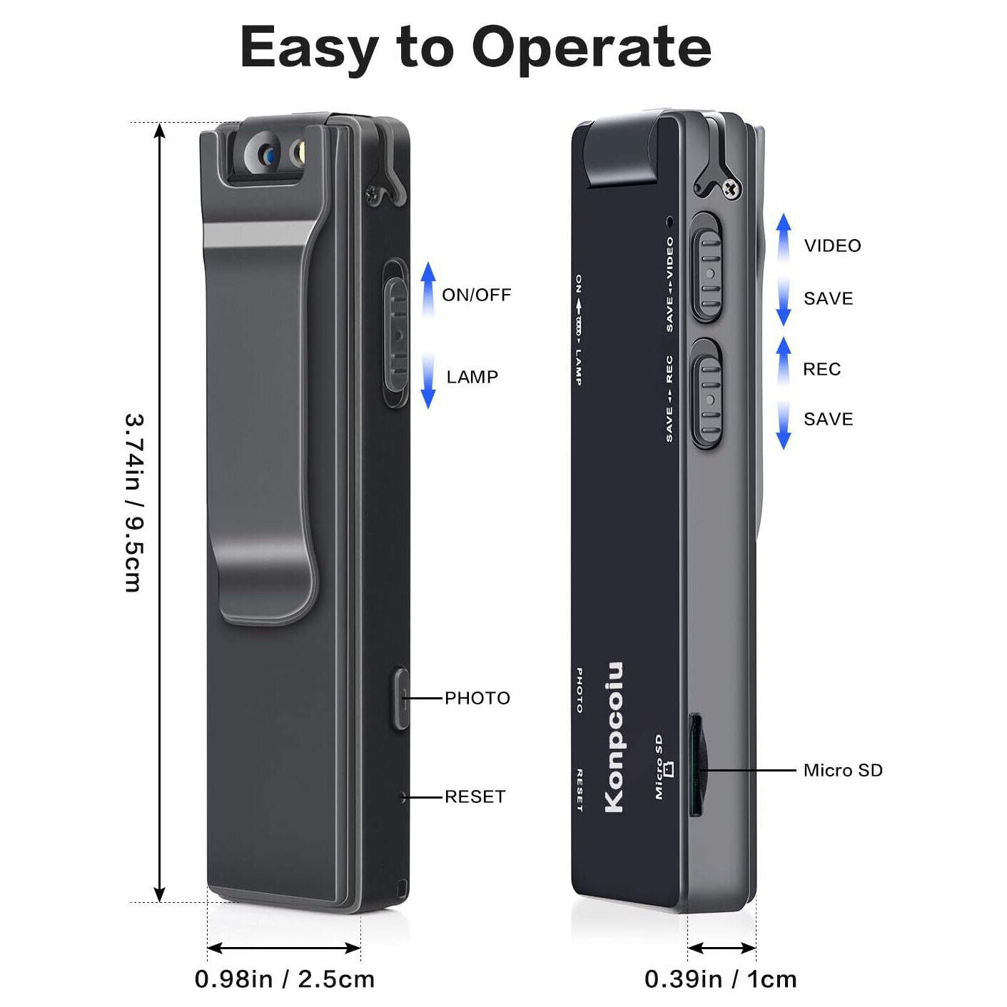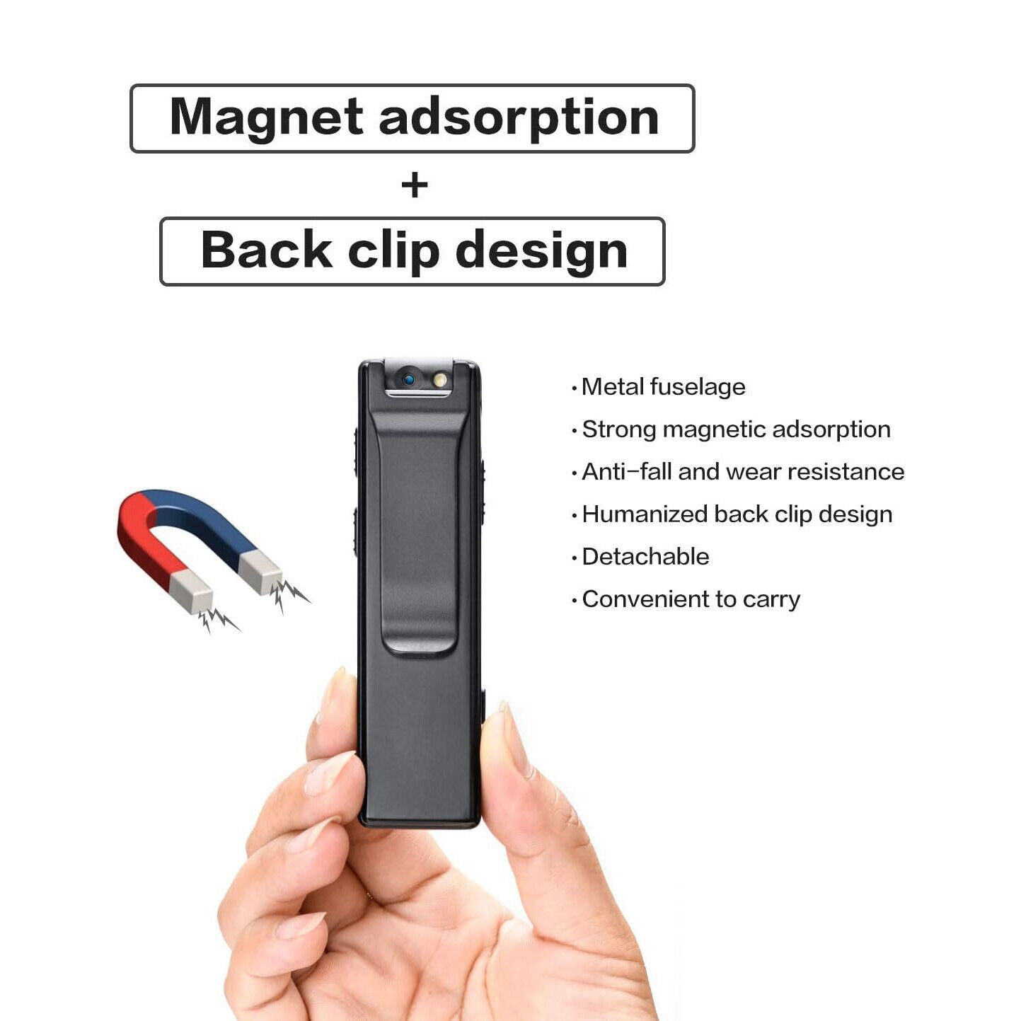 - The compact bodycam is easy to operate, and the back clip design frees both hands, making it easy to carry around.