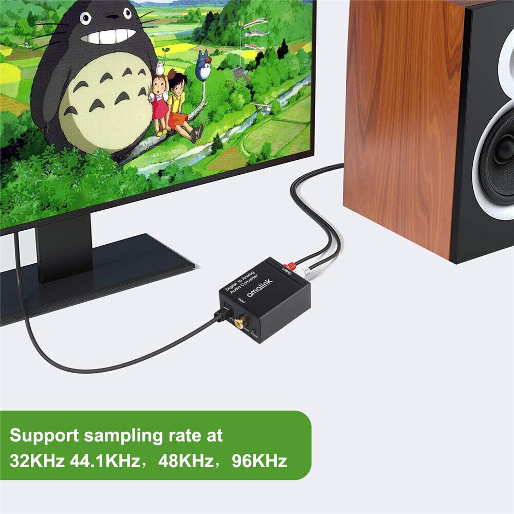 - Converts Coaxial or Toslink digital audio signals to analog L/R audio