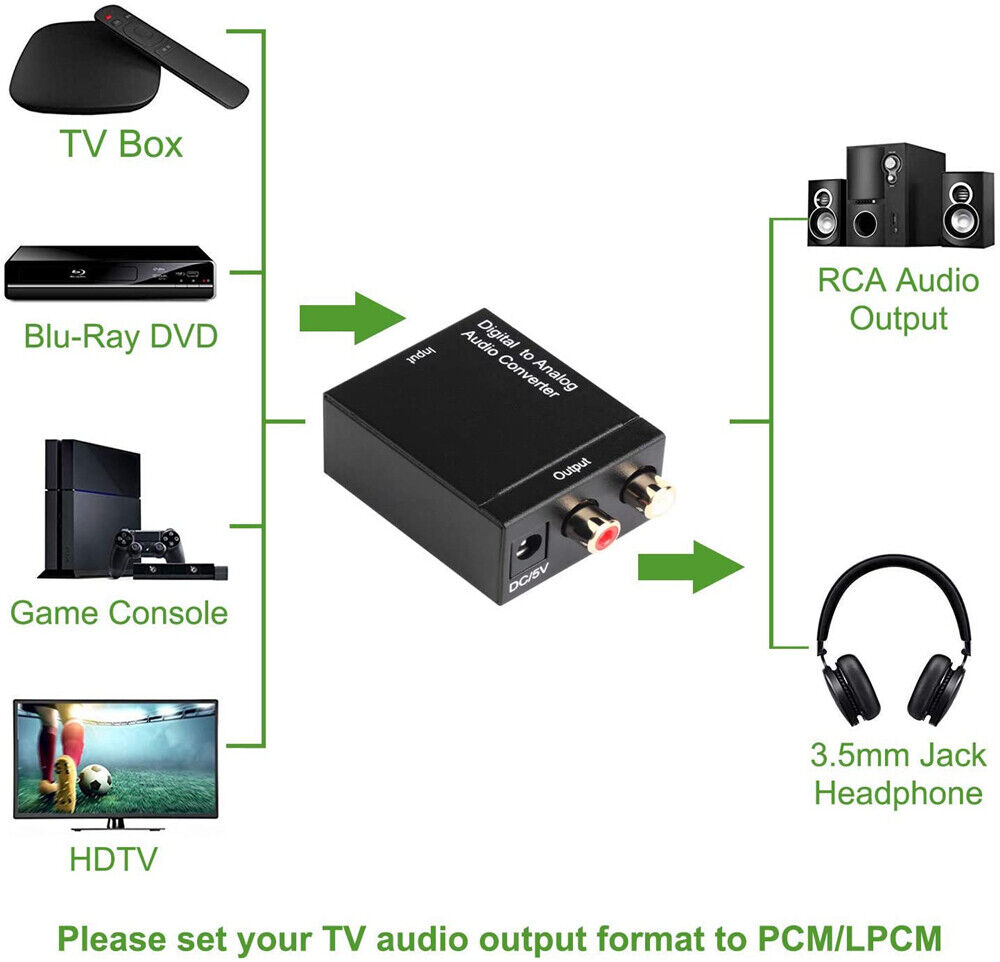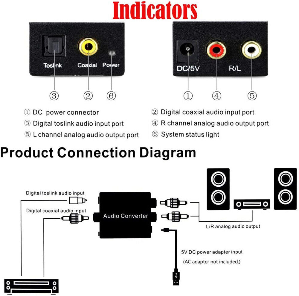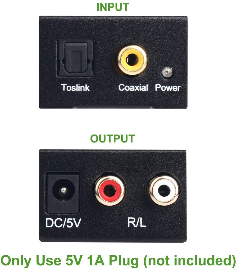 Optical Coaxial Toslink Digital to Analog Audio Converter Adapter RCA L/R 3.5mm