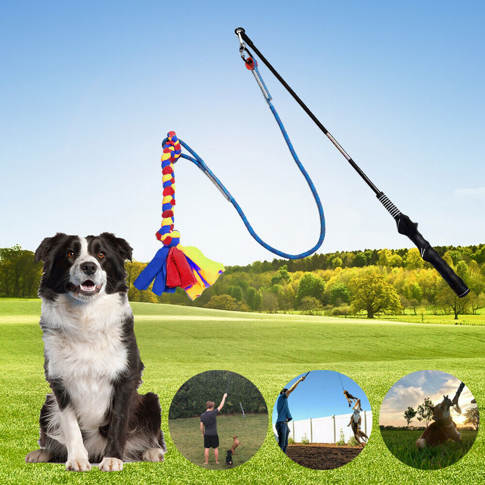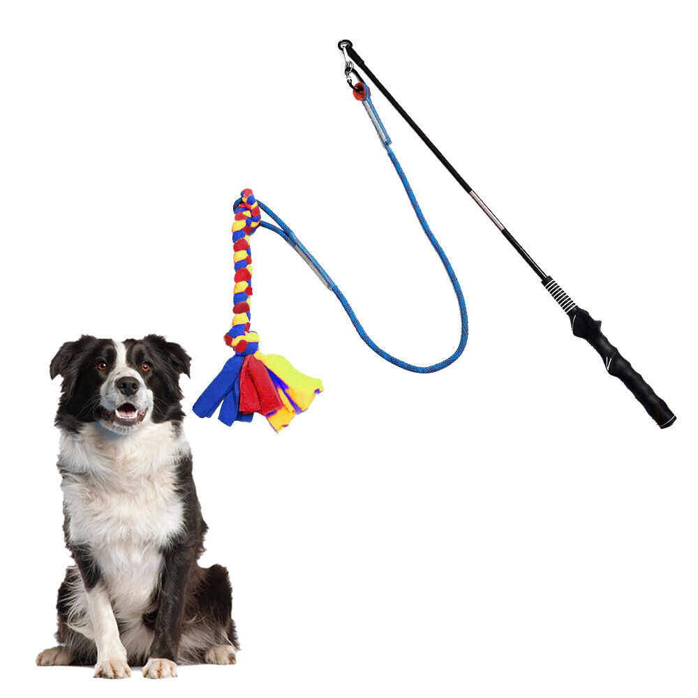 Outdoor Play Fun Interactive Dog Flirt Pole Extendable Teaser Wand Tug Toy Rope