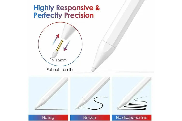 Pixel-perfect precision: 1.5mm POM tip as official ipad pencil material: better durability and won’t create scratches to your screen. Execute finer instructions with no lag/offset/breaking point!
