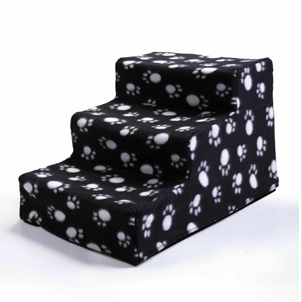 Pet Stairs 3 Steps Portable Cat Dog Ladder w/ Cover Step Ramp Climb For Pup Play