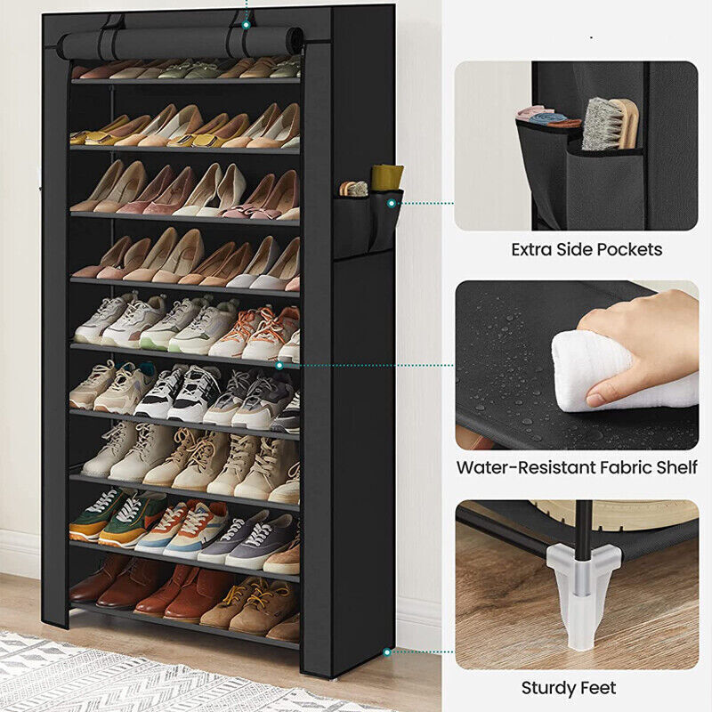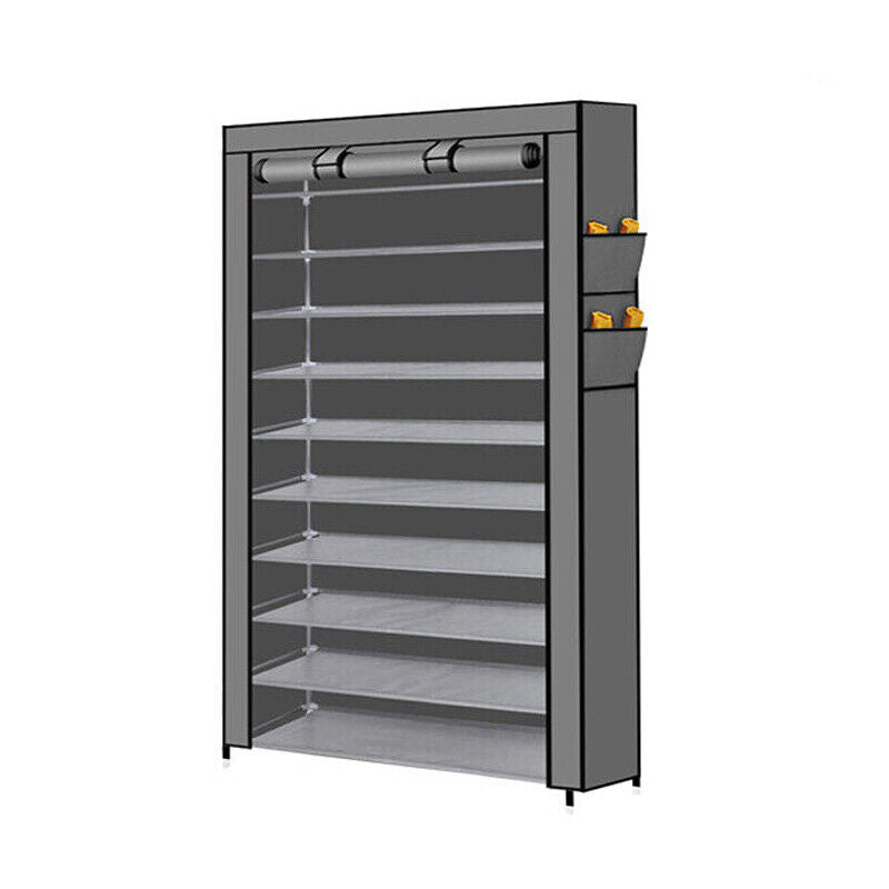 Portable 10 Tier Shoe Rack Storage Cabinet Organiser Wardrobe Cover