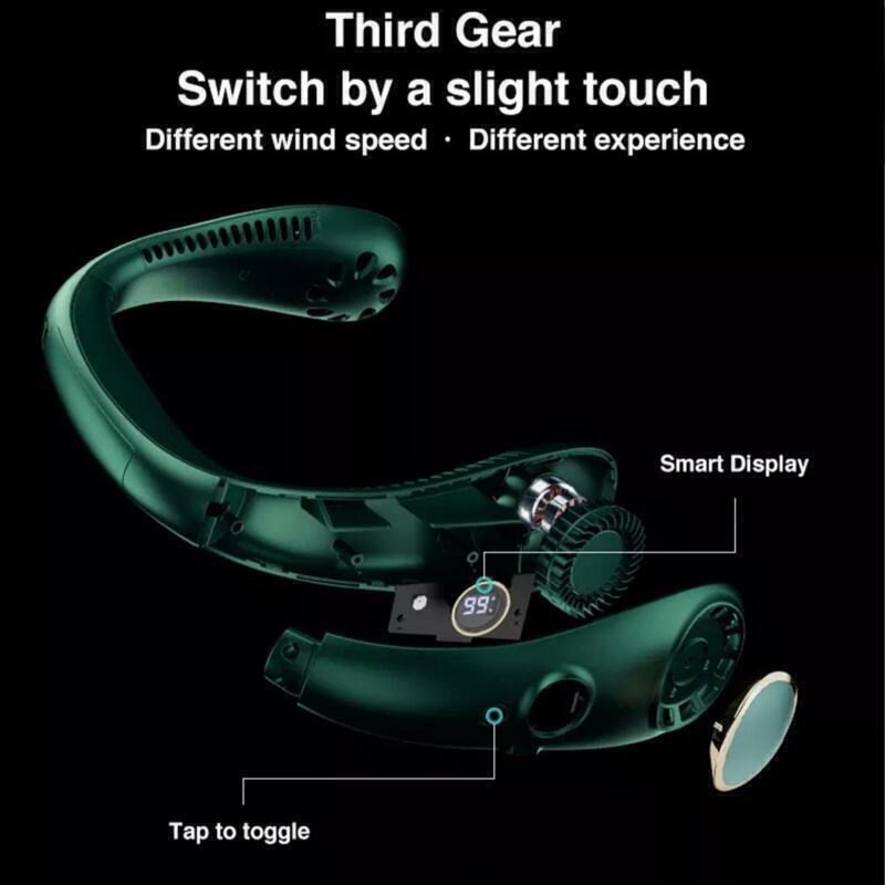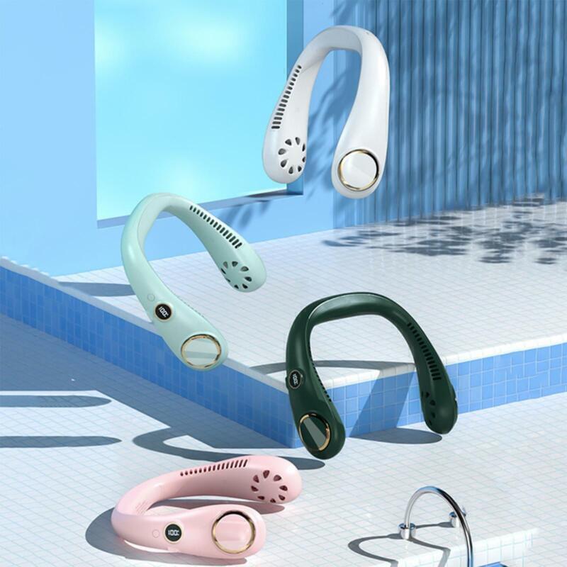 Rechargeable Portable Leafless Neck Fan Cooler Dual Effect Cooling Neckband USB