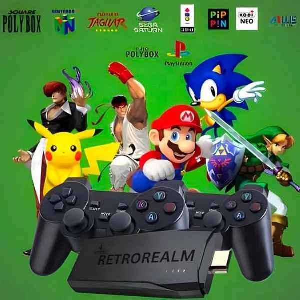 Retro Gaming Realm 4K + 64GB 10,000 Retro Games + 2 Wireless Gamepads