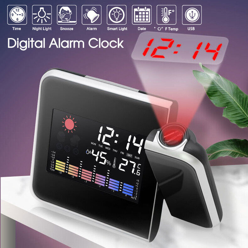 Smart Digital LED Projection Alarm Clock Temperature Time Projector LCD Display