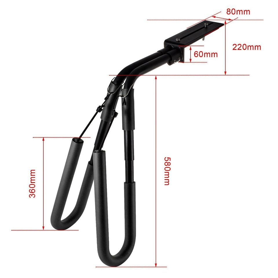 Features: Made of high-quality aluminum alloy, lightweight and durable. Wrapped with foam to prevent your motorcycle and board from rubbing. Fixed on the rear rack of your motorcycle. Safely hold your surfboard up to 20kg (44lb). Mounting hardware included. Specifications: Material: Aluminum alloy Color: Black Size: 800 * 80mm / 31.5 * 3.1in Weight: 1.58kg / 3.5lb Package List: 1 * Surfboard Rack 1 * Set of Hardware